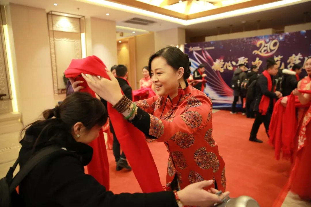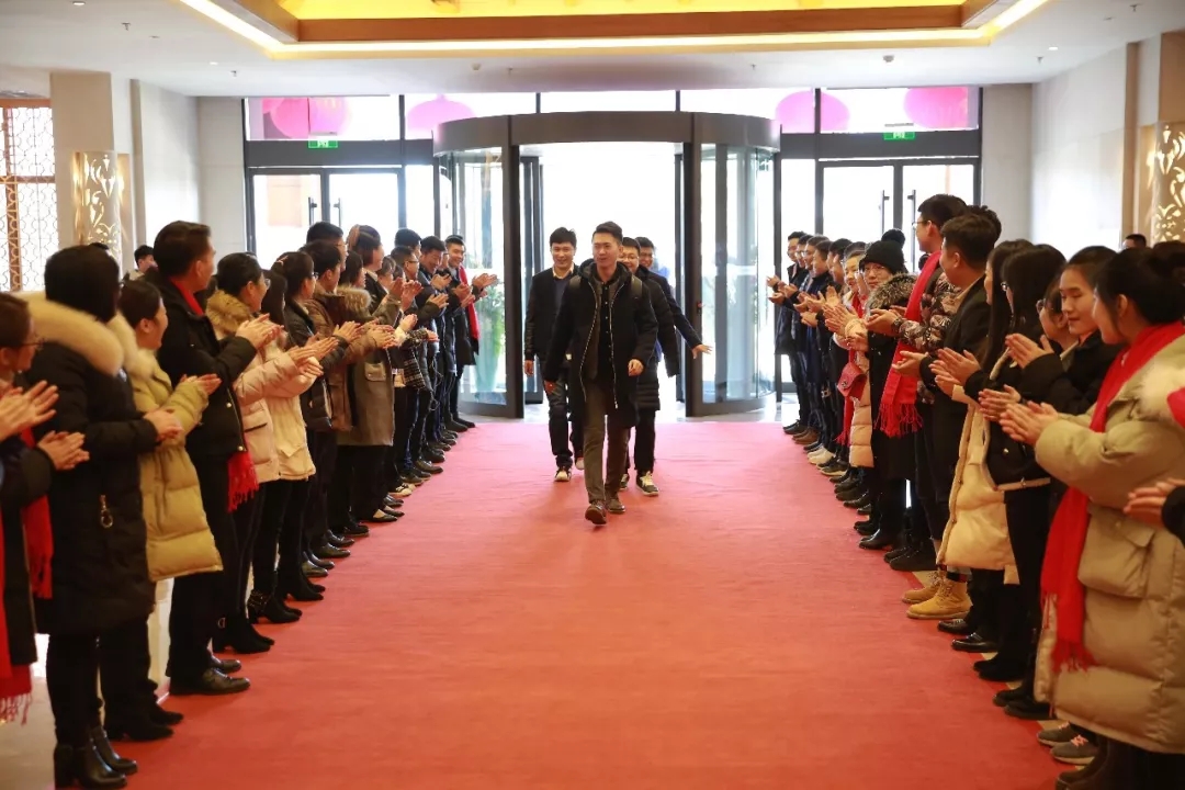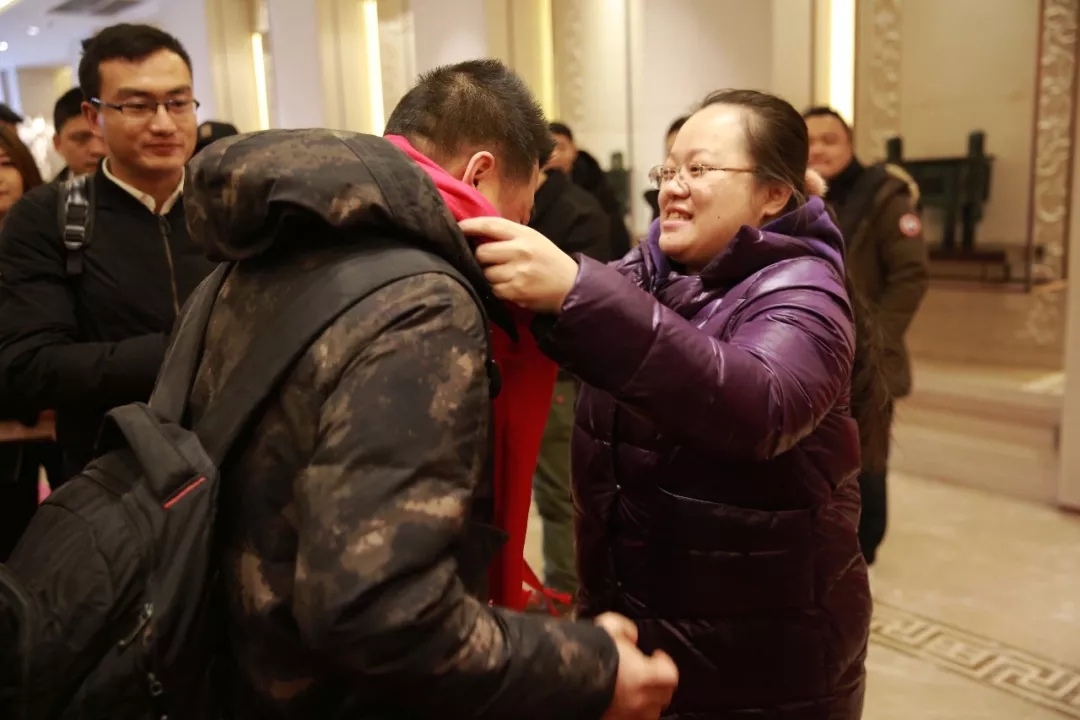 滿懷喜悅的心情,康姿百德的家人們踏上紅毯,緩緩走向會場入口。守候在會場入口的領(lǐng)導(dǎo)們,為大家?guī)显⒁庵凹楹眠\(yùn)”的紅圍巾,把最誠摯、最真情的祝福送給每位康姿百德家人。