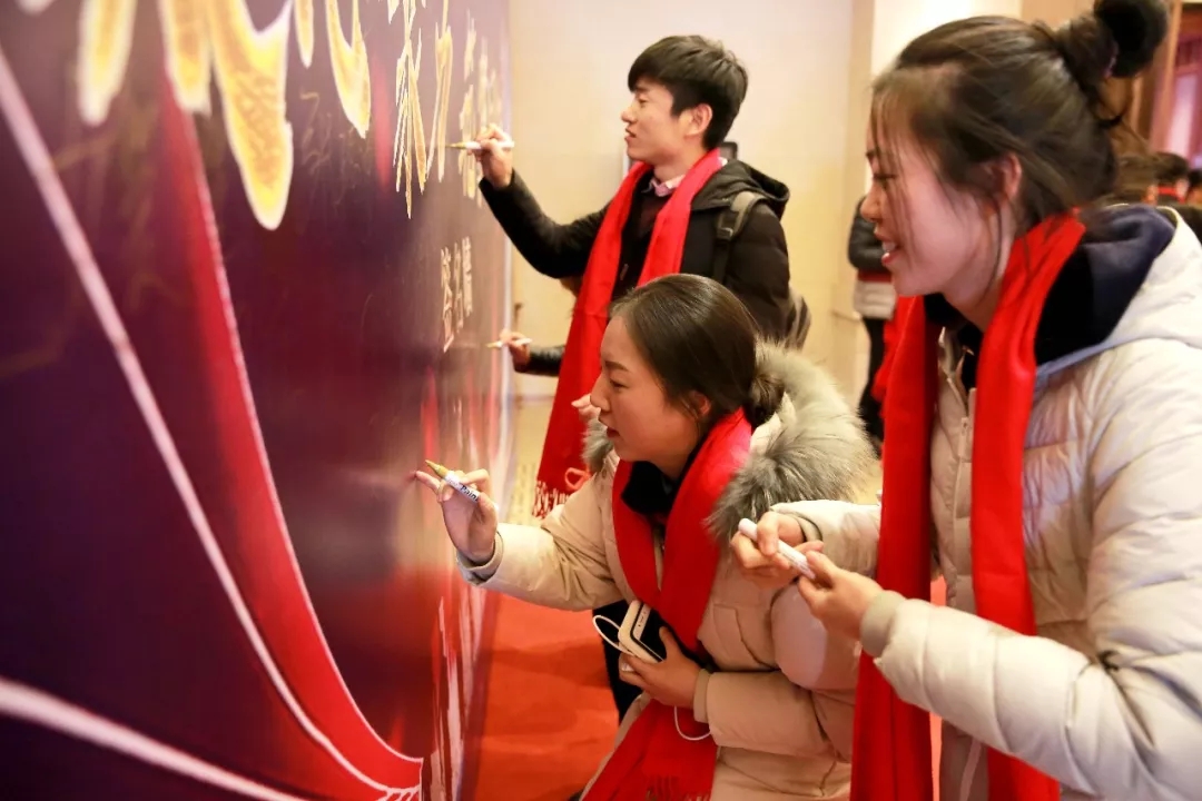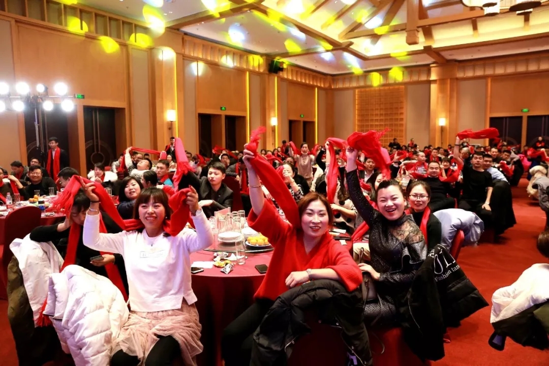 年會現(xiàn)場熱情洋溢、盡情歡呼??底税俚录胰藗兓サ佬麓鹤8?,分享喜悅心情,表現(xiàn)出了對美好生活的向往和做好新一年工作的信心。