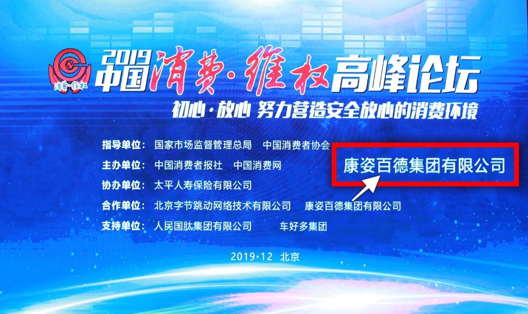 2019年12月13日,由國(guó)家市場(chǎng)監(jiān)督管理總局、中國(guó)消費(fèi)者協(xié)會(huì)指導(dǎo),中國(guó)消費(fèi)者報(bào)社和中國(guó)消費(fèi)網(wǎng)聯(lián)合主辦,康姿百德集團(tuán)作為合作單位,主題為“初心·放心——努力營(yíng)造安全放心消費(fèi)環(huán)境”的“2019中國(guó)消費(fèi)·維權(quán)高峰論壇”在北京隆重召開(kāi)。