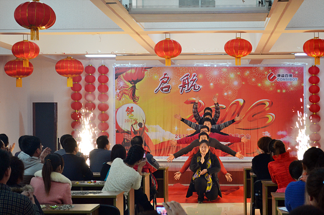 聯(lián)歡會在歌曲聯(lián)唱《歡天喜地拜大年》的歡快節(jié)奏中拉開帷幕,公司各部門紛紛上臺,《新年好》、《恭喜發(fā)財(cái)》、《正月里來正月正》、《小拜年》、《恭喜恭喜你》等經(jīng)典拜年歌曲再現(xiàn),別出心裁的出場方式讓人目不暇接。由市場部北京區(qū)表演的舞蹈《美觀不美觀》將演出推向了高潮,場下掌聲不斷,歡快、喜慶、熱烈的氣氛溢滿會場,整個會場暖意融融,變成了歡樂的海洋。