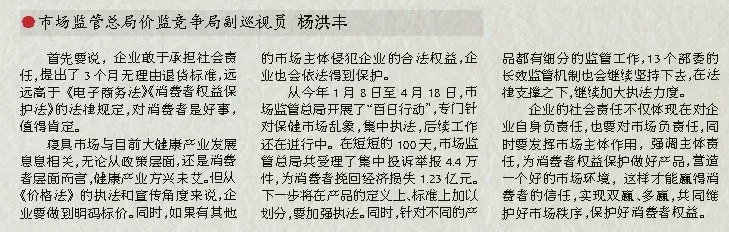 企業(yè)的社會責任不僅體現(xiàn)在對企業(yè)自身負責任,也要對市場負責任,同時要發(fā)揮市場主體作用,強調(diào)主體責任,為消費者權(quán)益保護做好產(chǎn)品,營造一個好的市場環(huán)境,這樣才能贏得消費者的信任,實現(xiàn)雙贏、多贏,共同維護好市場秩序,保護好消費者權(quán)益。