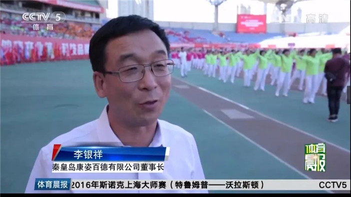 2016年,CCTV-5體育頻道報(bào)道康姿百德第五屆“全民健身 快樂同行”健身公益活動(dòng)。