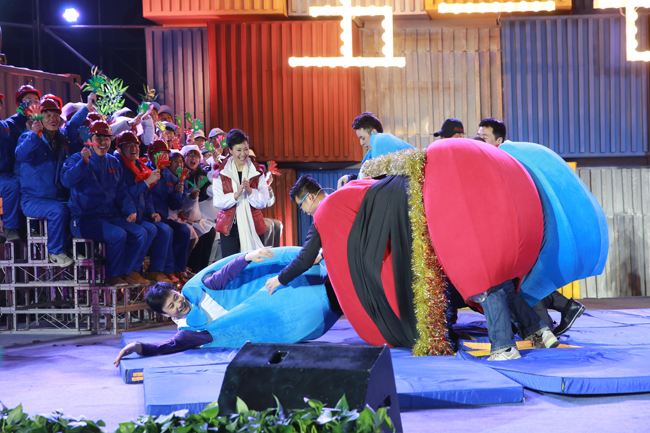本次《五一七天樂》節(jié)目的主題是“五一七天樂,勞動更快樂”。節(jié)目在獨具勞動特色的開場舞《最炫民族風》中拉開演出序幕,于文華、管彤推著小推車出場,車上的大箱子引起了觀眾們的好奇,兩位嘉賓說:“今天老畢不能來了,這是老畢送給觀眾朋友們的大禮?!闭斢^眾遺憾和猜測禮物是什么的時候,老畢出奇意外地從箱子里出來,這份始料未及的“大禮”頓時引起了現(xiàn)場觀眾一陣歡呼。隨后其他嘉賓分別騎玩具小車登臺,老畢宣告《五一七天樂》節(jié)目開始。節(jié)目以比賽的形式進行,眾位嘉賓分成“紅薯”和“拔絲”倆隊,現(xiàn)場比拼才藝。