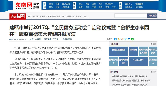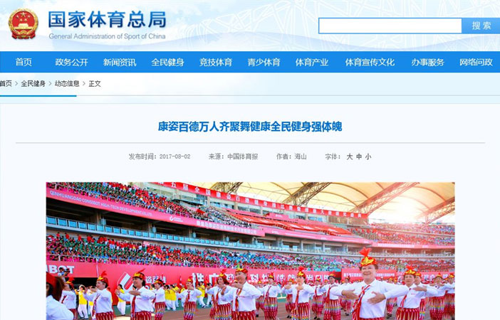 下面,康姿百德小編就帶大家看看政府網(wǎng)站和媒體對第六套康姿百德健身操展演活動的報道吧~