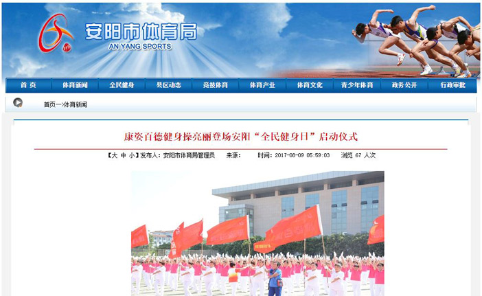 河南安陽體育局登載康姿百德健身操展演活動信息