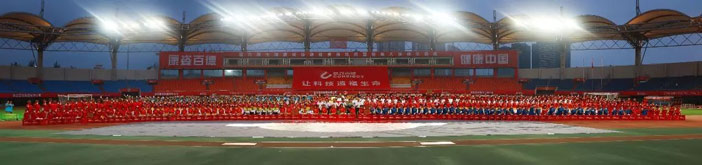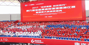 伴隨著優(yōu)美激昂的《走向復(fù)興》音樂(lè),一幅寫(xiě)有“讓科技造福生命”、面積為608平方米的巨型紅旗步入賽場(chǎng)??底税俚?1名工作人員共舉旗幟,整齊自如地緩緩前行,給人以極大的視覺(jué)沖擊!
