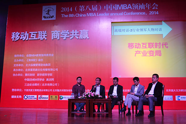 2014年5月2日至4日,我公司董事長(zhǎng)李銀祥應(yīng)邀出席了在北京召開(kāi)的第八屆中國(guó)MBA領(lǐng)袖年會(huì)。會(huì)上,李銀祥作為特邀嘉賓,參與行業(yè)領(lǐng)軍人物高端對(duì)話,并圍繞“移動(dòng)互聯(lián)時(shí)代產(chǎn)業(yè)變局”這一主題,對(duì)當(dāng)前國(guó)際國(guó)內(nèi)移動(dòng)互聯(lián)網(wǎng)產(chǎn)業(yè)的發(fā)展局勢(shì)進(jìn)行了深入分析,闡述了自己的觀點(diǎn)。