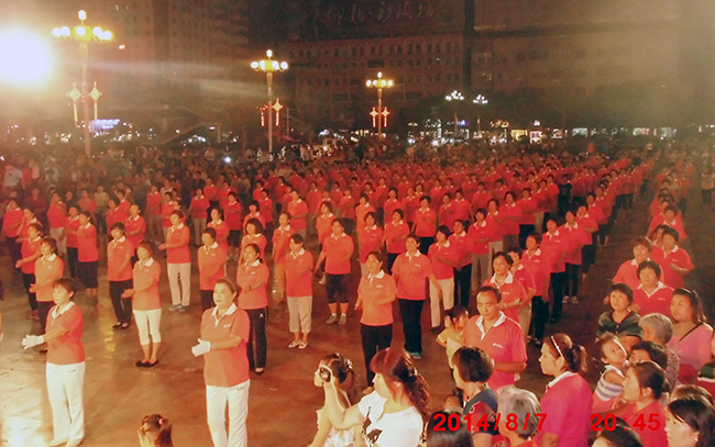 8月7日晚,河南新鄭市炎黃廣場(chǎng)上,廣大市民以各種方式迎接第六個(gè)“全民健身日”的到來(lái)。由康姿百德戶外健身營(yíng)400多人組成的健身操隊(duì)伍,隨著歡快有力的音樂(lè),共同跳起康姿百德健身操,以實(shí)際行動(dòng)投入到全民健身活動(dòng)中來(lái),形成了當(dāng)?shù)厝窠∩淼囊坏懒溜L(fēng)景線。新鄭電視臺(tái)對(duì)本次活動(dòng)進(jìn)行了現(xiàn)場(chǎng)采訪和報(bào)道。