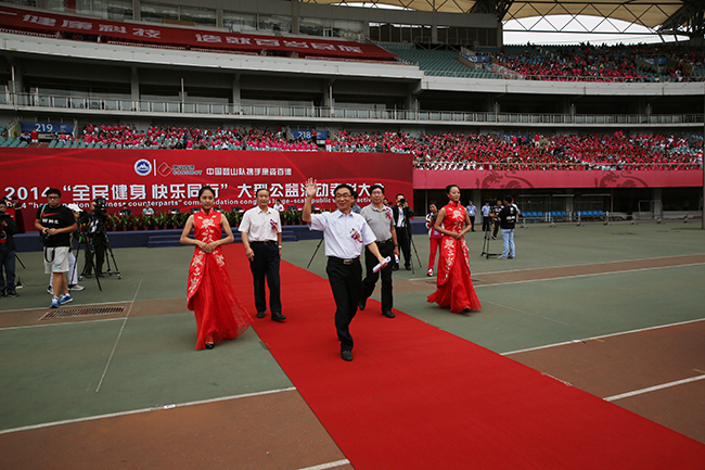 為全面展示康姿百德2014“全民健身快樂同行”大型公益活動(dòng)的成果,進(jìn)一步把全民健身活動(dòng)引向深入,來自全國各地的257個(gè)代表隊(duì)、11000多人進(jìn)行了氣勢恢宏的康姿百德健身操展演。伴隨著耳熟能詳?shù)男?,各代表?duì)依次入場,一面面隊(duì)旗迎風(fēng)高揚(yáng),一排排隊(duì)伍整齊劃一,節(jié)奏明快的旋律和優(yōu)美舒暢的動(dòng)作有機(jī)融合,彰顯出了“我運(yùn)動(dòng)、我健康、我快樂”的健身風(fēng)采和大家對幸福生活的追求,把人們帶入了一個(gè)五彩繽紛的歌舞世界。晚上7點(diǎn)30分,經(jīng)過6個(gè)多小時(shí)的展演,活動(dòng)在燈火閃爍的夜色中緩緩落幕。