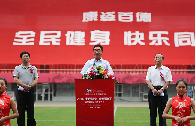 秦皇島康姿百德高新技術(shù)開發(fā)有限公司董事長、總經(jīng)理李銀祥致大會(huì)開幕詞;中國登山協(xié)會(huì)主席李致新、中國消費(fèi)者協(xié)會(huì)副會(huì)長母建華、秦皇島市副市長馮志永等領(lǐng)導(dǎo)出席會(huì)議,李致新、母建華作講話,分別對康姿百德公司為“推廣健康科技、造就百歲民族”所做出的努力給予充分肯定;中國奧委會(huì)副主席段世杰宣布康姿百德第三套健身操展演開始。
