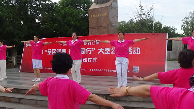 2014年8月9日,第六個(gè)“全民健身日”剛過,在各地群眾正以前所未有的熱情掀起新一輪全民健身熱潮的時(shí)候,四川德陽康姿百德戶外健身營組織當(dāng)?shù)亟∩韾酆谜?,在珠江橋鄧小平廣場舉行了2014“全民健身 快樂同行”大型公益活動(dòng)德陽地區(qū)啟動(dòng)儀式,號(hào)召廣大市民積極參加體育鍛煉,養(yǎng)成良好的生活習(xí)慣,真正形成全民健身、天天健身的濃厚氛圍。