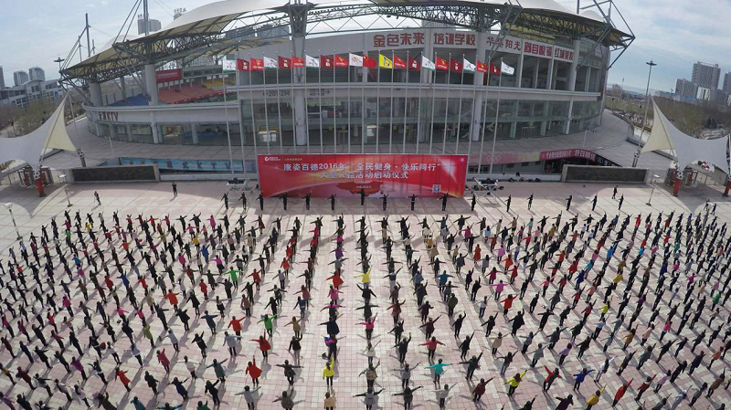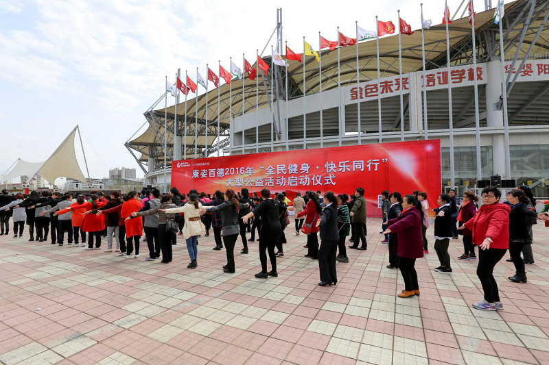 學(xué)員們參與康姿百德2016年“全民健身·快樂同行”大型公益活動的啟動儀式