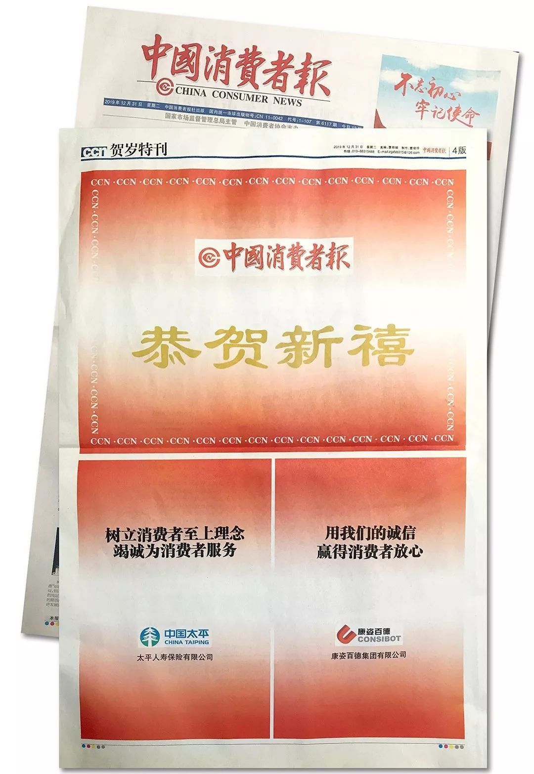2019年12月31日,康姿百德再次榮登《中國消費(fèi)者報》,這也是2019年第四次榮登此報。本次《中國消費(fèi)者報》邀請了在消費(fèi)維權(quán)領(lǐng)域成績優(yōu)秀的幾家知名企業(yè),康姿百德作為受邀企業(yè)之一在賀歲版面進(jìn)行刊登,在新年來臨之際,為廣大消費(fèi)者送上新春祝福。