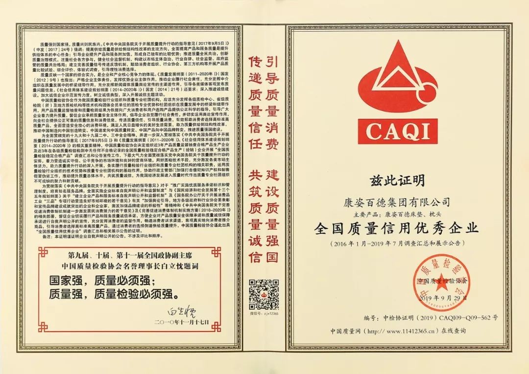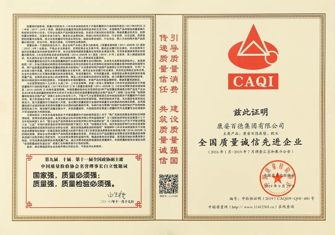 康姿百德產(chǎn)品被評(píng)為“全國(guó)質(zhì)量檢驗(yàn)先進(jìn)企業(yè)”