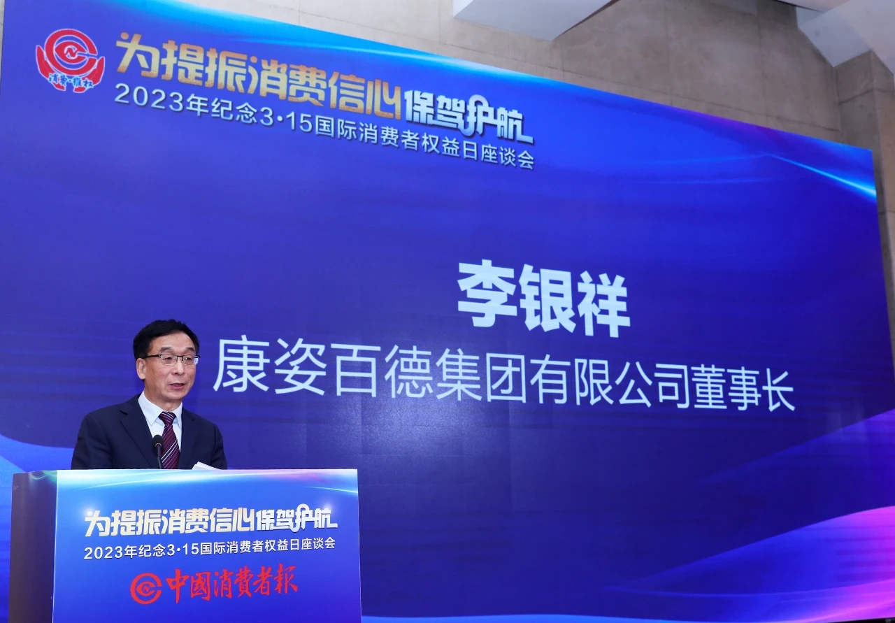 2023年3月14日,經(jīng)國家市場監(jiān)督管理總局、中國消費者協(xié)會指導(dǎo),中國消費者報社、中國消費網(wǎng)主辦的2023年度“紀(jì)念3·15”國際消費者權(quán)益日座談會在京召開。來自國家市場監(jiān)管總局相關(guān)司局負(fù)責(zé)人、中國消費者協(xié)會領(lǐng)導(dǎo),以及在保護(hù)消費者權(quán)益方面貢獻(xiàn)突出的典范企業(yè)等,共同參加本次座談會。康姿百德集團(tuán)董事長李銀祥受邀出席,并作主旨演講。