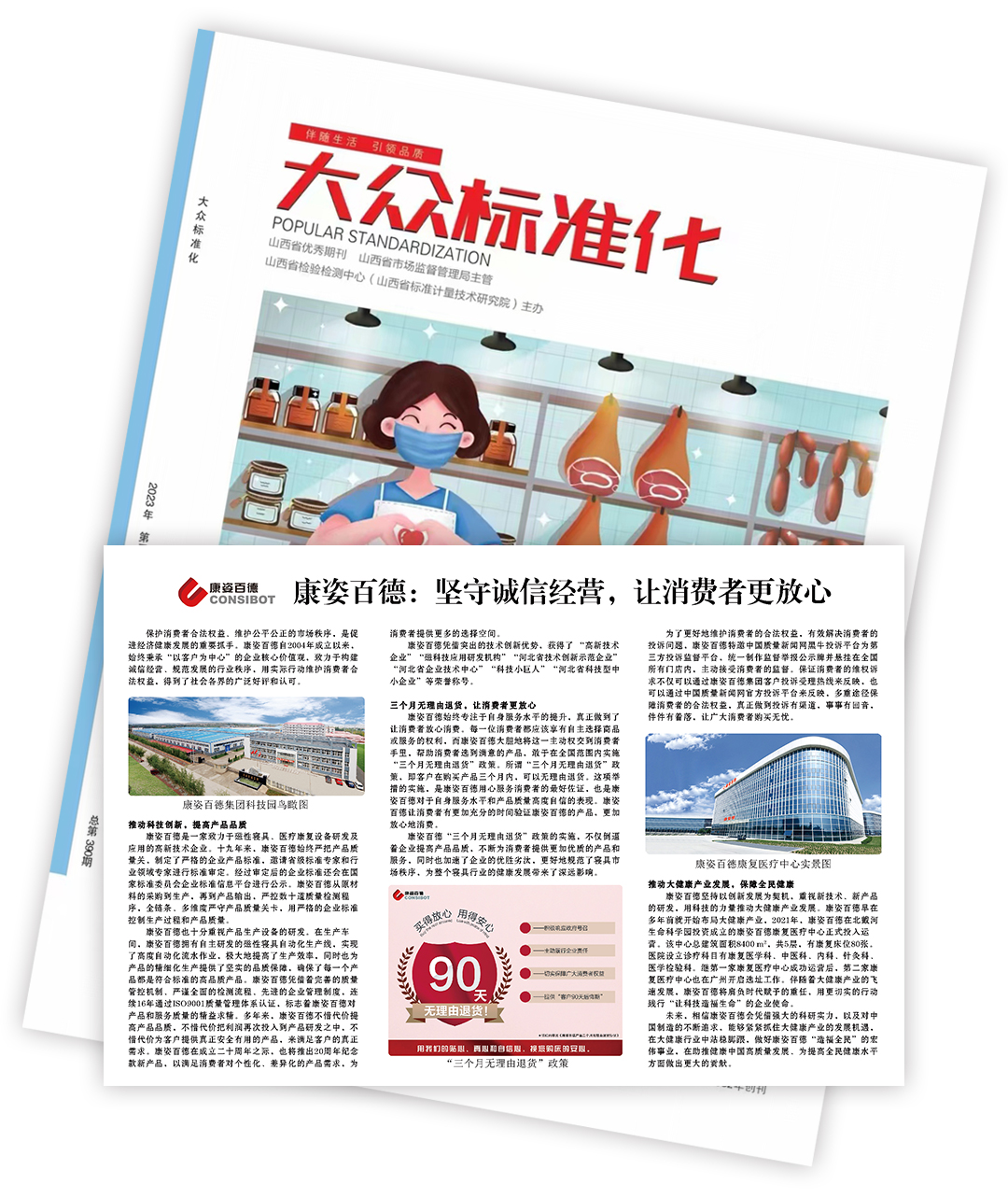 《大眾標(biāo)準(zhǔn)化》雜志—是山西市場(chǎng)監(jiān)督管理局發(fā)行的唯一期刊,也對(duì)康姿百德進(jìn)行了報(bào)道??底税俚卢F(xiàn)已連續(xù)4年榮登山西《大眾標(biāo)準(zhǔn)化》雜志。