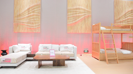 科技展廳的產(chǎn)品展示區(qū),以“科技感”與“舒適睡眠”為設(shè)計(jì)導(dǎo)向,圍繞“溫暖”“家”“科技”幾個(gè)核心元素,實(shí)現(xiàn)了科技元素與家居生活的有機(jī)結(jié)合,構(gòu)建一個(gè)家庭場(chǎng)景式的沉浸空間,一個(gè)有溫度的展示環(huán)境。
