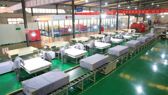 由于康姿百德對(duì)產(chǎn)品結(jié)構(gòu)和生產(chǎn)工藝要求較高,市面上銷售的設(shè)備無法滿足生產(chǎn)要求,康姿百德憑借強(qiáng)大的科研實(shí)力,自主研發(fā)出了磁性寢具自動(dòng)化生產(chǎn)線。這條生產(chǎn)線平均每55秒生產(chǎn)組裝出一張康姿百德床墊,大大提高了產(chǎn)品的生產(chǎn)效率。這種精細(xì)化的生產(chǎn)方式,也進(jìn)一步提升了產(chǎn)品質(zhì)量,增強(qiáng)了企業(yè)的核心競爭力。
