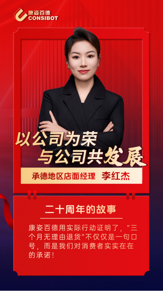今年是康姿百德集團成立20周年。在20年的發(fā)展歷程中,涌現(xiàn)出一大批在生產(chǎn)發(fā)展、原料采購、質(zhì)量管控、經(jīng)營管理、售后服務(wù)等各個領(lǐng)域立足崗位、奉獻(xiàn)建功的優(yōu)秀代表。讓我們一起看看這些榜樣故事。本期帶你走進(jìn)康姿百德承德地區(qū)店面經(jīng)理李紅杰。