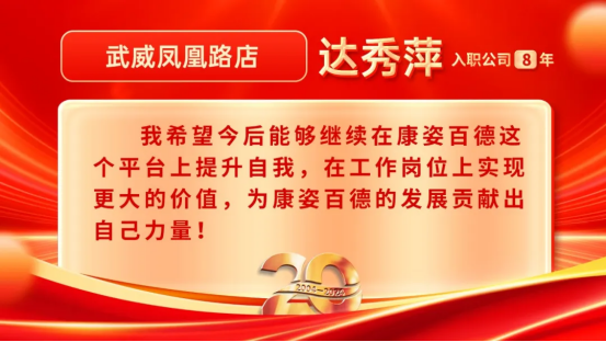 康姿百德20周年專賣店員工的系列故事會持續(xù)推出,讓我們一起期待其他地區(qū)專賣店員工代表的精彩故事吧!