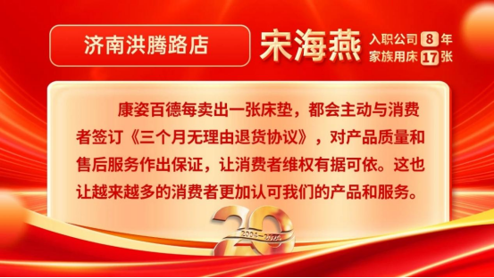 康姿百德20周年專賣店員工的系列故事會(huì)持續(xù)推出,讓我們一起期待其他地區(qū)專賣店員工代表的精彩故事吧!