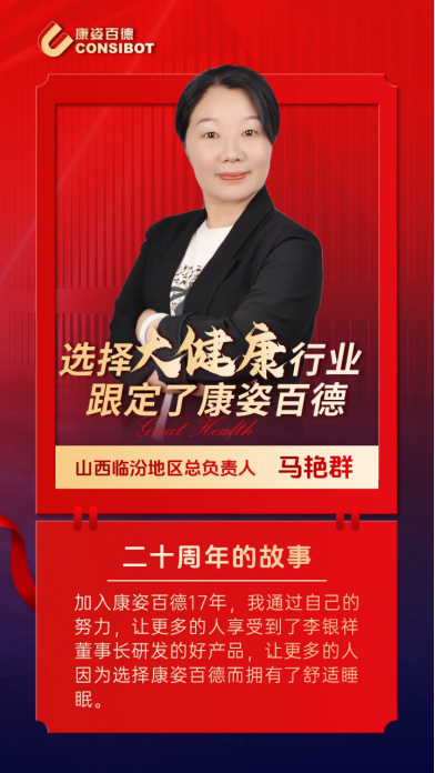 今年是康姿百德集團成立20周年。在20年的發(fā)展歷程中,涌現(xiàn)出一大批在經(jīng)營管理、原料采購、品牌宣傳、暖心服務(wù)、人才引進和培訓(xùn)等各個領(lǐng)域立足崗位、奉獻建功的優(yōu)秀代表。讓我們一起看看這些榜樣故事。本期帶你走進康姿百德山西臨汾地區(qū)總負責(zé)人馬艷群。