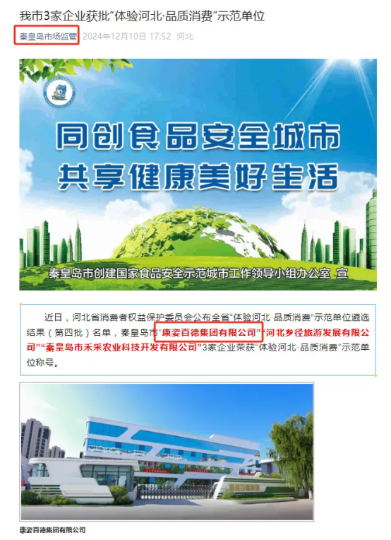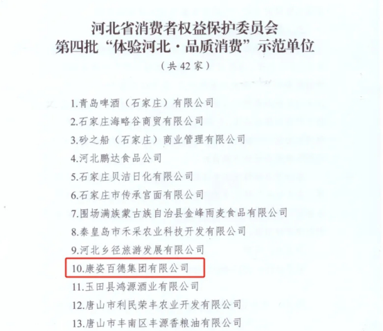 秦皇島市場監(jiān)管部門于12月10日在公眾平臺公布了本市第四批“體驗(yàn)河北·品質(zhì)消費(fèi)”示范單位入選名單,康姿百德集團(tuán)榜上有名。
