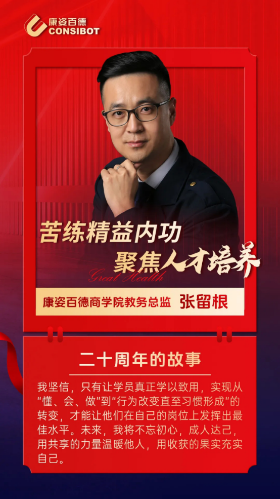 今年是康姿百德集團成立20周年。在20年的發(fā)展歷程中,涌現(xiàn)出一大批在經(jīng)營管理、原料采購、品牌宣傳、暖心服務(wù)、人才引進和培訓(xùn)等各個領(lǐng)域立足崗位、奉獻建功的優(yōu)秀代表。讓我們一起看看這些榜樣故事。本期帶你走進康姿百德商學(xué)院教研總監(jiān)趙勝男、教學(xué)總監(jiān)沈劍坤和教務(wù)總監(jiān)張留根。