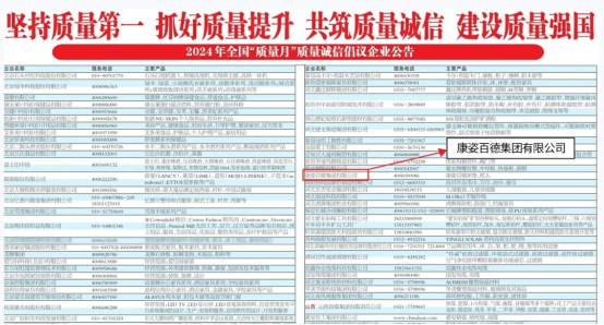 康姿百德被中國質(zhì)量檢驗協(xié)會評選為“2024年全國‘質(zhì)量月’質(zhì)量誠信倡議企業(yè)”