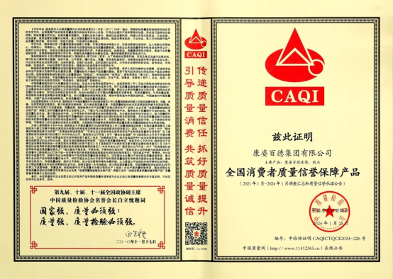 康姿百德集團榮獲“全國消費者質(zhì)量信譽保障產(chǎn)品”、“全國質(zhì)量檢驗穩(wěn)定合格產(chǎn)品”榮譽稱號