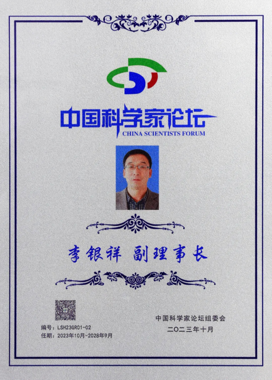 李銀祥董事長當選為“中國科學家論壇理事會副理事長”