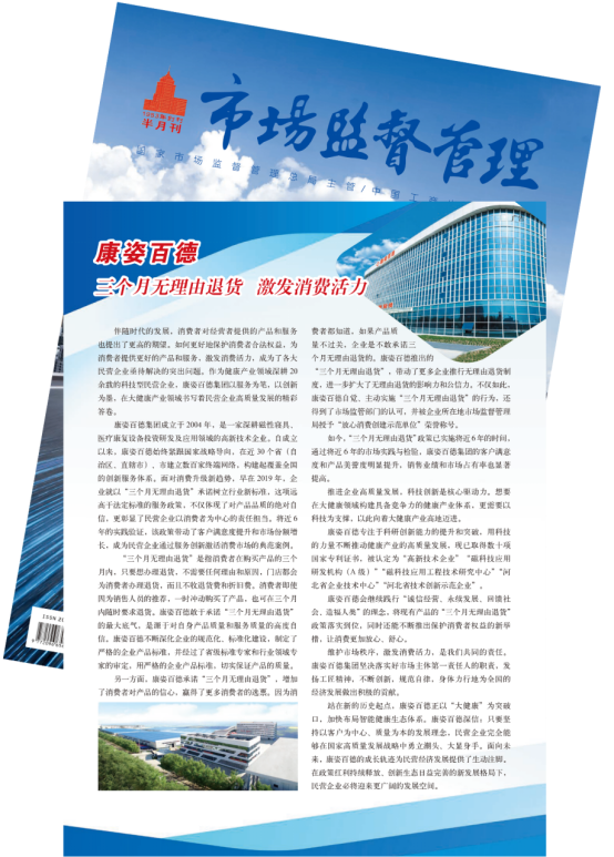 《市場(chǎng)監(jiān)督管理》半月刊以《康姿百德:三個(gè)月無理由退貨 激發(fā)消費(fèi)活力》為題,全面、詳細(xì)地報(bào)道了康姿百德。