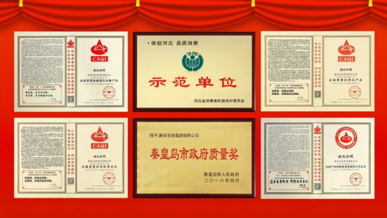 對產品質量的高度重視,讓康姿百德先后榮獲了“河北省‘體驗河北·品質消費’示范單位”“秦皇島市政府質量獎(組織獎)”“全國產品和服務質量誠信示范企業(yè)”“全國質量信用優(yōu)秀企業(yè)”“全國質量檢驗穩(wěn)定合格產品”“全國質量信得過產品”等多項榮譽。