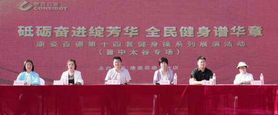 康姿百德集團(tuán)銷(xiāo)售公司副總監(jiān) 惠鵬,太原區(qū)域經(jīng)理 肖峰,晉中地區(qū)、太原地區(qū)總經(jīng)理 趙淑敏,晉中太谷地區(qū)總經(jīng)理 王海麗,晉中太谷地區(qū)健身操愛(ài)好者代表 楊惠榮,太谷地區(qū)消費(fèi)者代表 王富平共同出席了本次活動(dòng)。