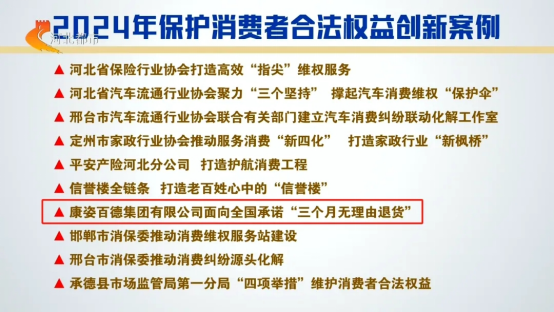 2025年3月,“三個月無理由退貨”成功入選2024年保護消費者合法權(quán)益十大創(chuàng)新案例,并被河北省消費者保護委員會作為典范,向全社會推廣。