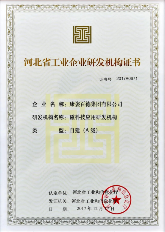 康姿百德在研發(fā)經(jīng)費(fèi)占比、在研項(xiàng)目數(shù)量、知識產(chǎn)權(quán)產(chǎn)出等方面均遠(yuǎn)超河北省工業(yè)和信息化廳的基本要求,展現(xiàn)出系統(tǒng)化、規(guī)?;难邪l(fā)實(shí)力。該榮譽(yù)充分說明了康姿百德在磁應(yīng)用技術(shù)領(lǐng)域的領(lǐng)先地位,是對康姿百德在磁科技領(lǐng)域所做貢獻(xiàn)的認(rèn)可。