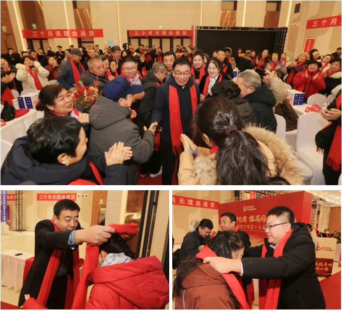 紅毯迎客,盛情先達(dá)。銷(xiāo)售公司領(lǐng)導(dǎo)早早守候在紅毯兩側(cè),為每一位到場(chǎng)的客戶(hù)朋友佩戴紅圍巾,以一抹吉祥紅傳遞美好祝愿。康姿百德集團(tuán)李銀祥董事長(zhǎng)的到來(lái),瞬間點(diǎn)燃全場(chǎng)氛圍,客戶(hù)們熱情揮手、頻頻致意,掌聲與歡呼聲交織共振,滿(mǎn)場(chǎng)暖意流淌,盡顯相聚溫情。