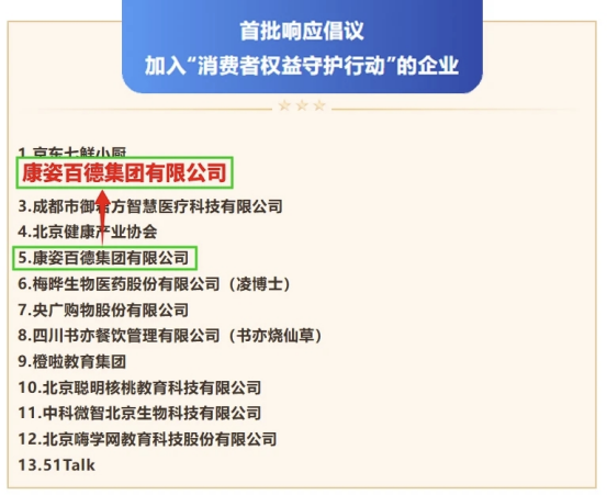 康姿百德作為首批響應(yīng)“消費(fèi)者權(quán)益守護(hù)行動(dòng)”的企業(yè),與12家各行企業(yè)代表共同踐行承諾:秉持誠(chéng)信守法,讓消費(fèi)者放心;堅(jiān)守質(zhì)量標(biāo)準(zhǔn),讓消費(fèi)者安心;踐行主體責(zé)任,讓消費(fèi)者稱心;暢通維權(quán)渠道,讓消費(fèi)者舒心;提升消費(fèi)品質(zhì),讓消費(fèi)者開心;主動(dòng)接受監(jiān)督,給消費(fèi)者信心。