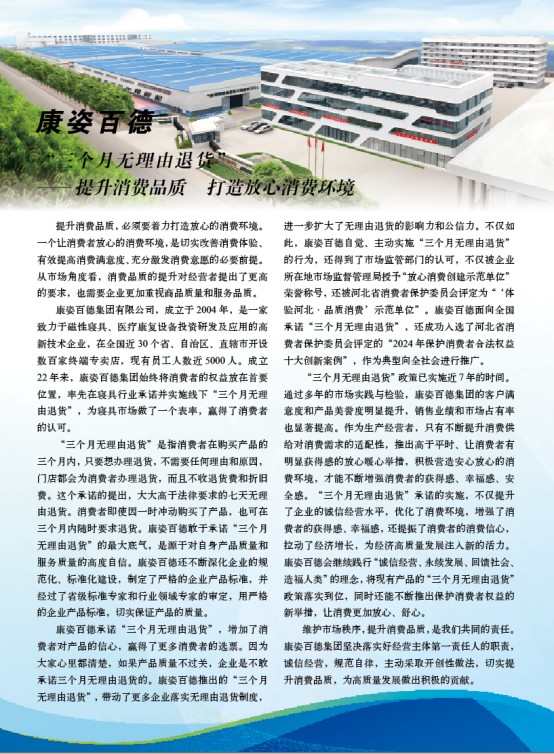 在2026年“3·15”國際消費(fèi)者權(quán)益日到來之際,康姿百德集團(tuán)憑借多年來在誠信經(jīng)營、保護(hù)消費(fèi)者權(quán)益方面的貢獻(xiàn),受到了中國消費(fèi)者報(bào)、市場監(jiān)督管理半月刊、山西市場導(dǎo)報(bào)、遼寧電視臺等多家權(quán)威媒體的專題報(bào)道,并作為優(yōu)秀企業(yè)代表受邀出席各地315主題活動(dòng)。