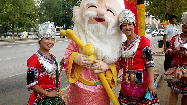 “和壽星合影就會(huì)健康長壽哦~”——顧客與壽星卡通精靈親密合照